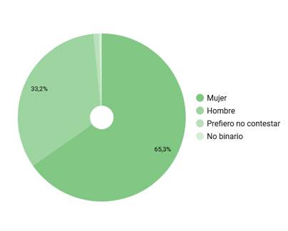 Sector feminizado: el 65,1% de los profesionales son mujeres, reflejando una fuerte presencia femenina en el sector cultural.